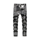 These black printed jeans for men feature a unique pattern that adds flair to your everyday look. The design is versatile, allowing you to pair them with a simple tee or a trendy jacket. Whether you're heading out for a casual day or meeting friends, this pair ensures you stand out.