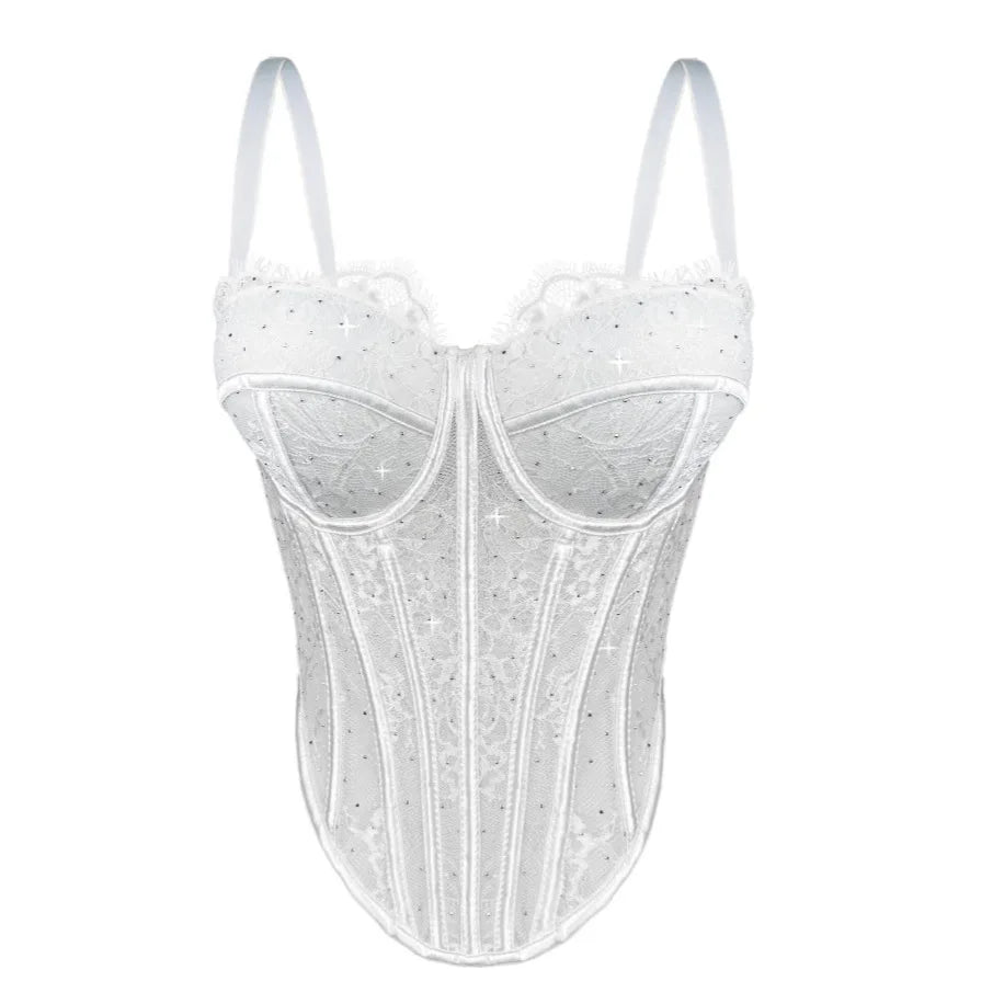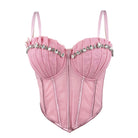 VacationGrabs Alluring Clubwear Bustier Shirt with Rhinestones