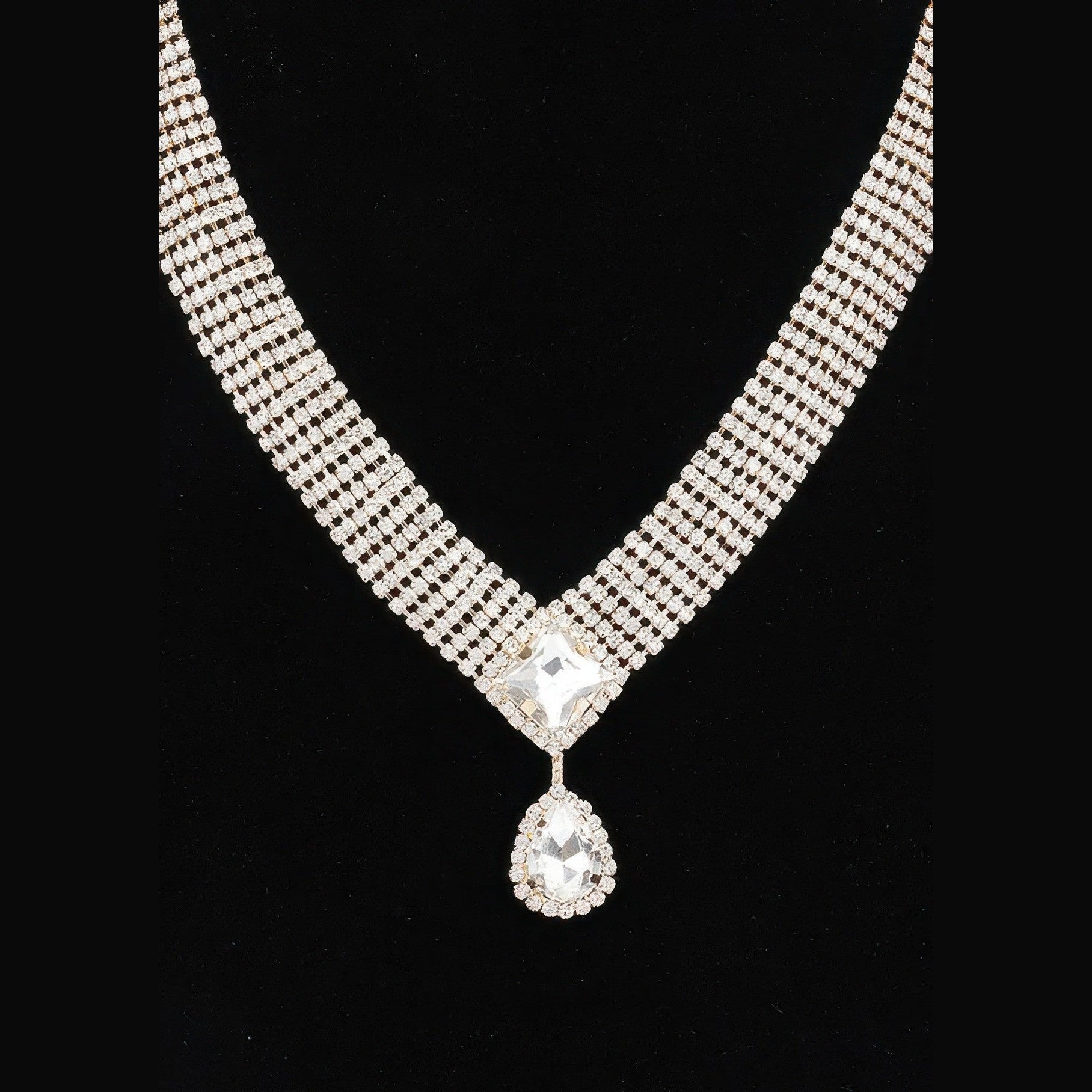 Add sparkle to every look with this statement rhinestone necklace and earrings set. Designed for elegance, the set catches every hint of light. Each rhinestone is set with precision for extra shine. Perfect for formal evenings or a standout day style. The statement rhinestone necklace and earrings offer timeless appeal. Glamorous yet refined, they pair well with dresses, blouses, or even casual outfits.