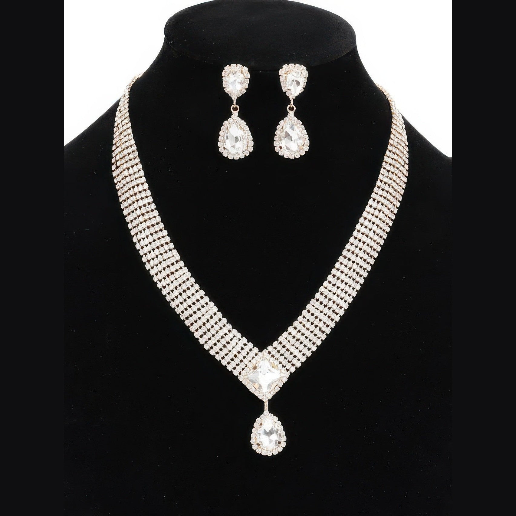 VacationGrabs Statement Rhinestone Necklace and Earrings Set