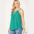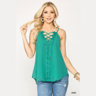 Perfect for a night out, special events, or any occasion where you want to make a statement, the Plunging V-Neckline Lattice Top in Jade is a chic and daring choice.