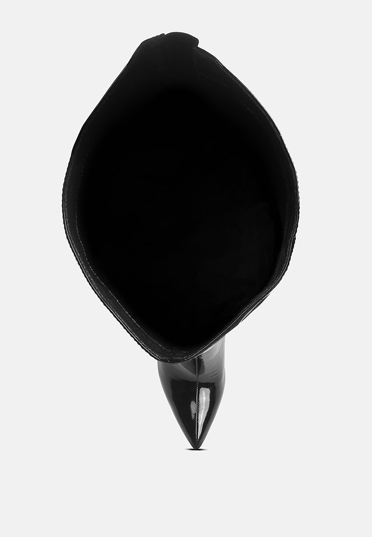Minkles Patent Pu Long Slim Block Heeled Boots