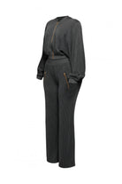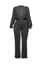 Stay comfortable and stylish in this zipper closure hoodie jacket and pants set, perfect for laid-back days with a polished twist. The ribbed fabric adds texture and stretch for a soft, flexible fit that moves with you. The hoodie jacket features a full zipper closure and long sleeves, while the coordinating wide-leg pants offer a flattering waistband and a relaxed silhouette. Functional zipper pockets add a touch of utility and convenience. Designed for comfort and versatility, this set is ideal for casual outings or elevated loungewear.