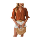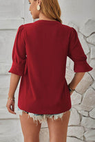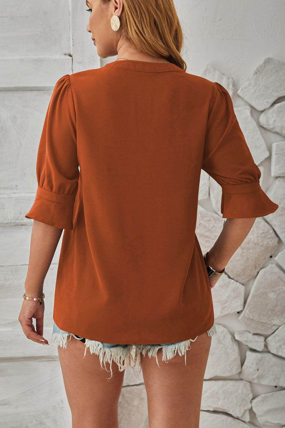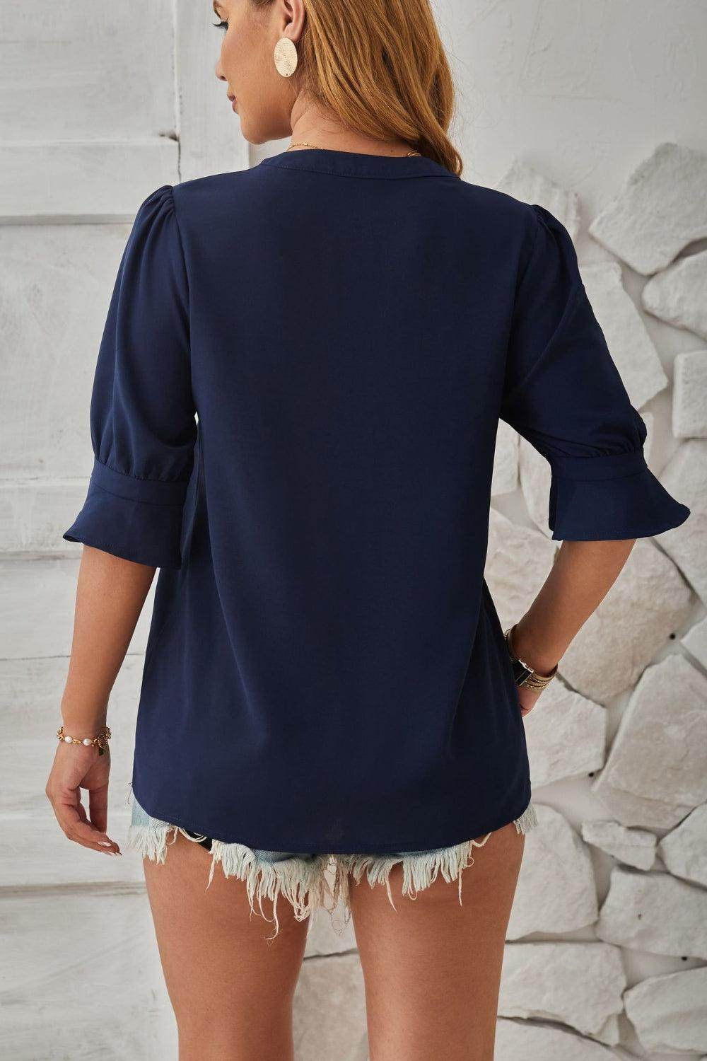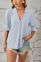 Learn more about our Notched Half Sleeve Blouse at VacationGrabs: