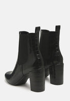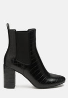 Croc Textured Block Heeled Chelsea Boots By RUW