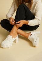 The leather clogs are the perfect amalgamation of style and elegance with the beautiful touch of stud embellishments. The light cushion insoles offer a relaxed fit and are a must-have pair in your shoedrobe with their versatile and comfortable quality.