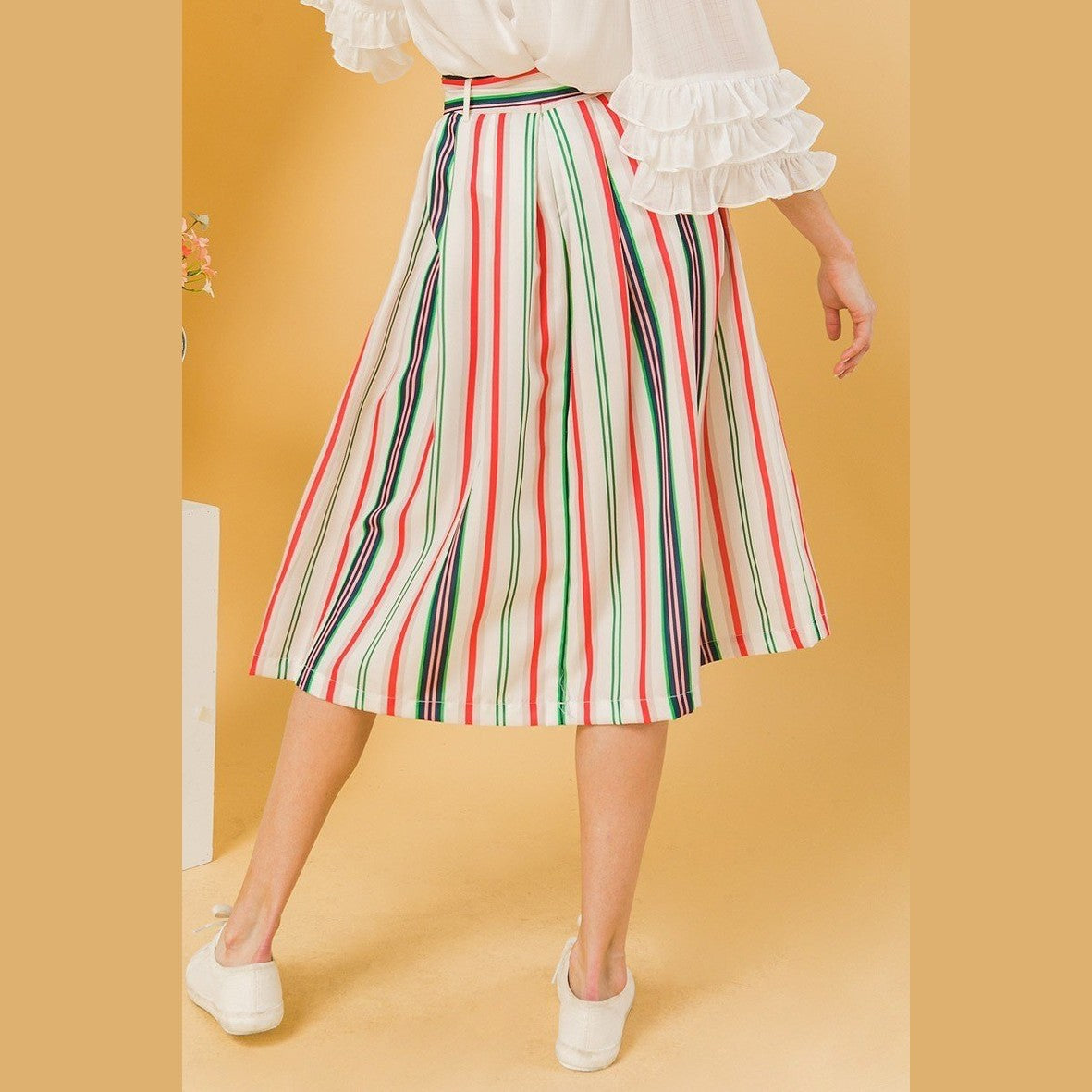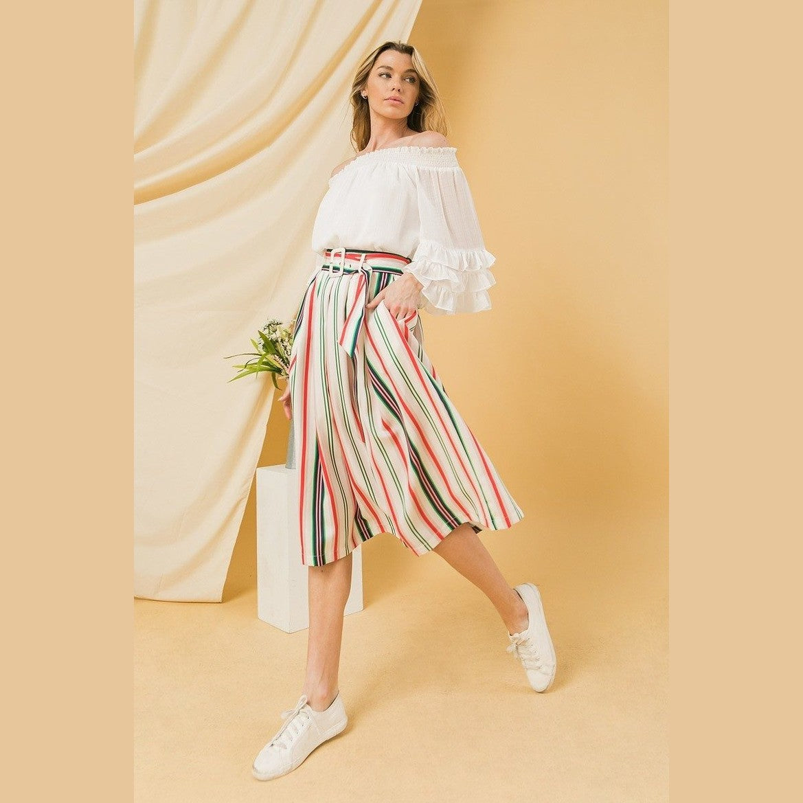 VacationGrabs Colorful Striped Vacation Skirt with Belt
