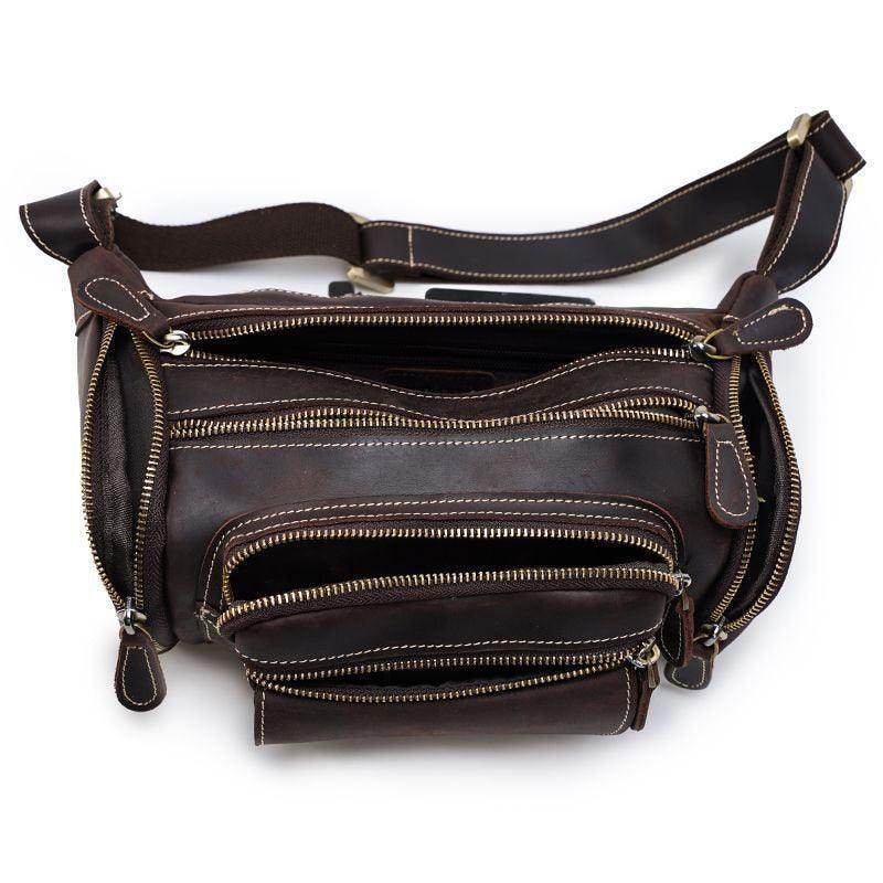 VacationGrabs Genuine Leather Waist Bag with Multiple Pockets