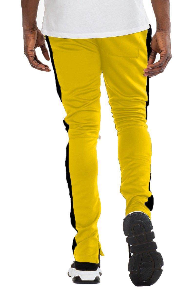 The elastic waistband provides a secure fit while maintaining flexibility. The breathable fabric ensures you stay comfortable, no matter how active your day gets. These yellow black slim fit track pants are the perfect way to stay stylish and relaxed.