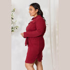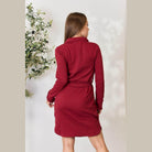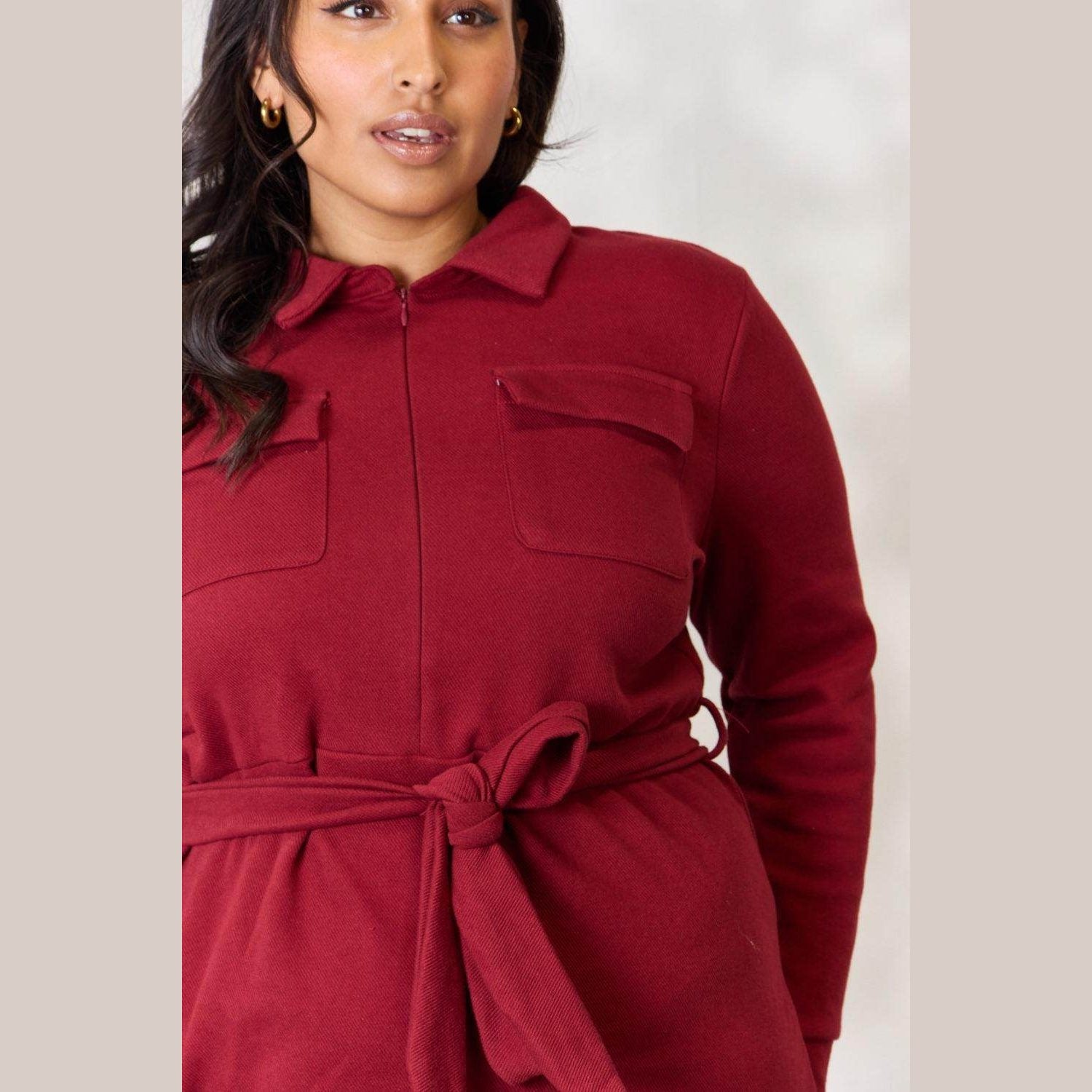 Culture Code Full Size Tie Front Half Zip Long Sleeve Shirt Dress