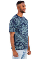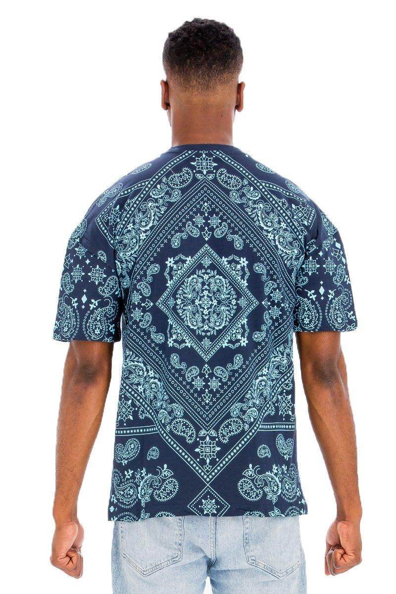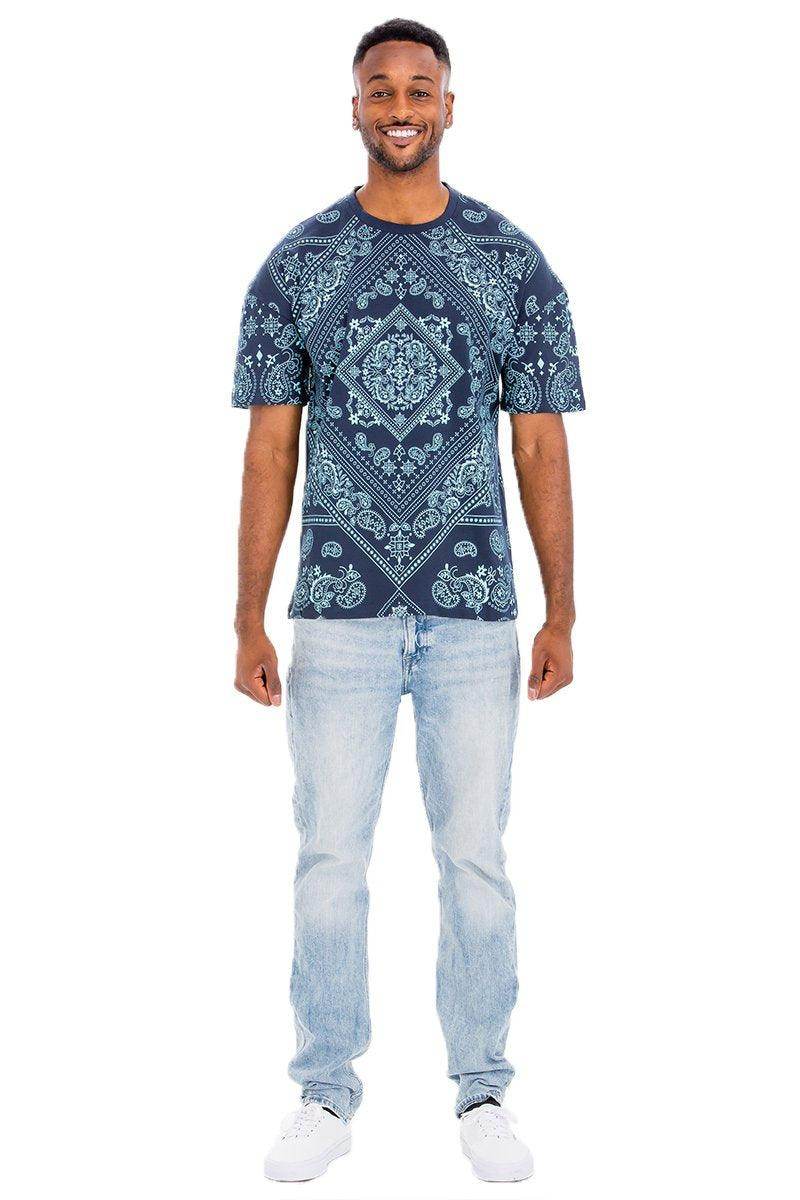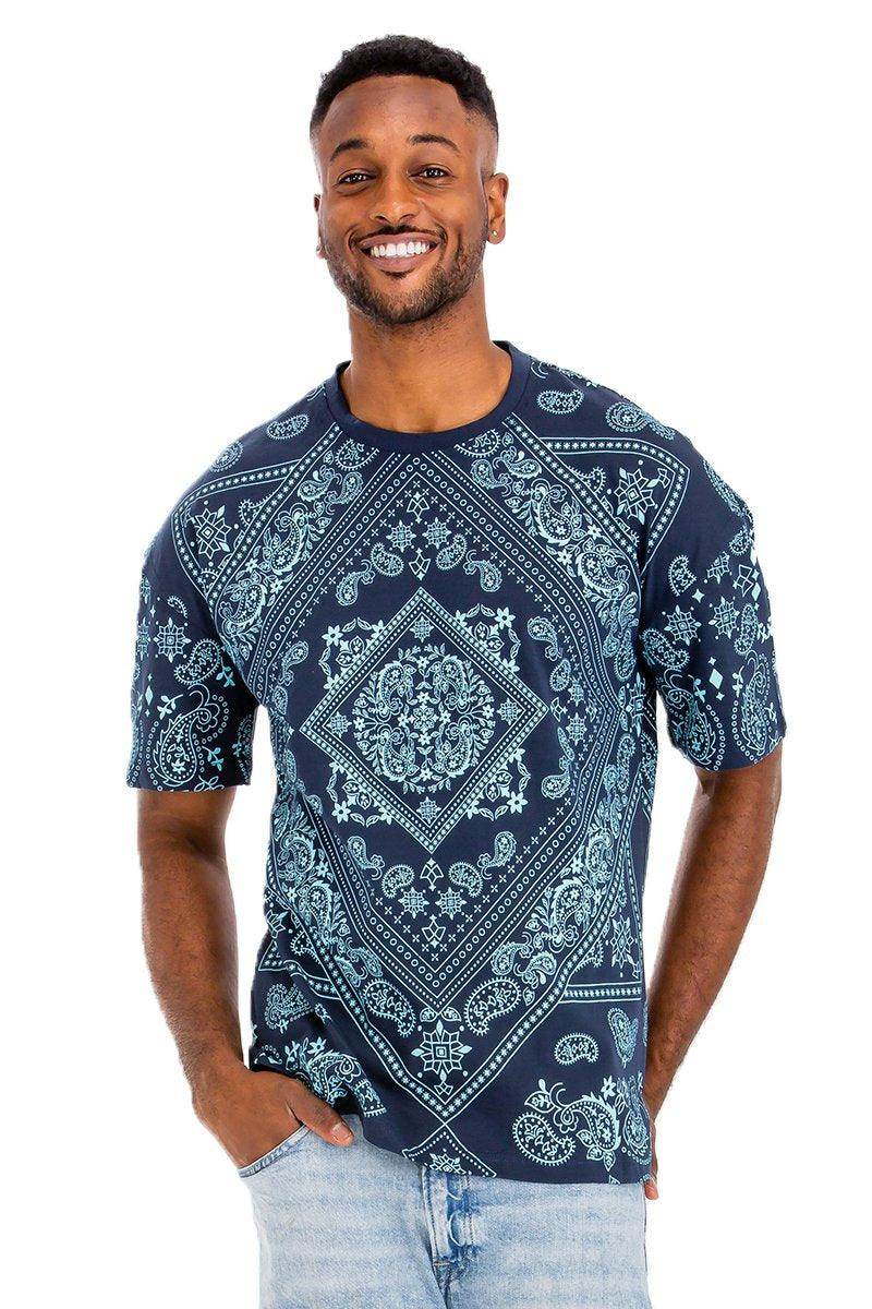 Unleash your sense of style with our Blue Bandana Print Tshirt! Perfect for men who love to make a statement, this cruise fashion piece adds a touch of personality to any outfit. Stand out from the crowd and rock your unique fashion sense with our bold and trendy tshirt!