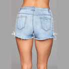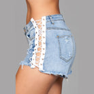 Make a statement with the Double Up Shorts—an effortlessly edgy piece featuring distressed detailing and daring lace-up side panels. These light-wash denim shorts are designed with a low-rise fit that highlights your curves while keeping things cool and casual. The rugged frayed hem and bold cutouts bring an urban edge to any warm-weather look. A slight stretch ensures they hug your frame comfortably, making them perfect for everything from beach days to music festivals. Pair them with a bikini top or cropped tee for an instant outfit upgrade.