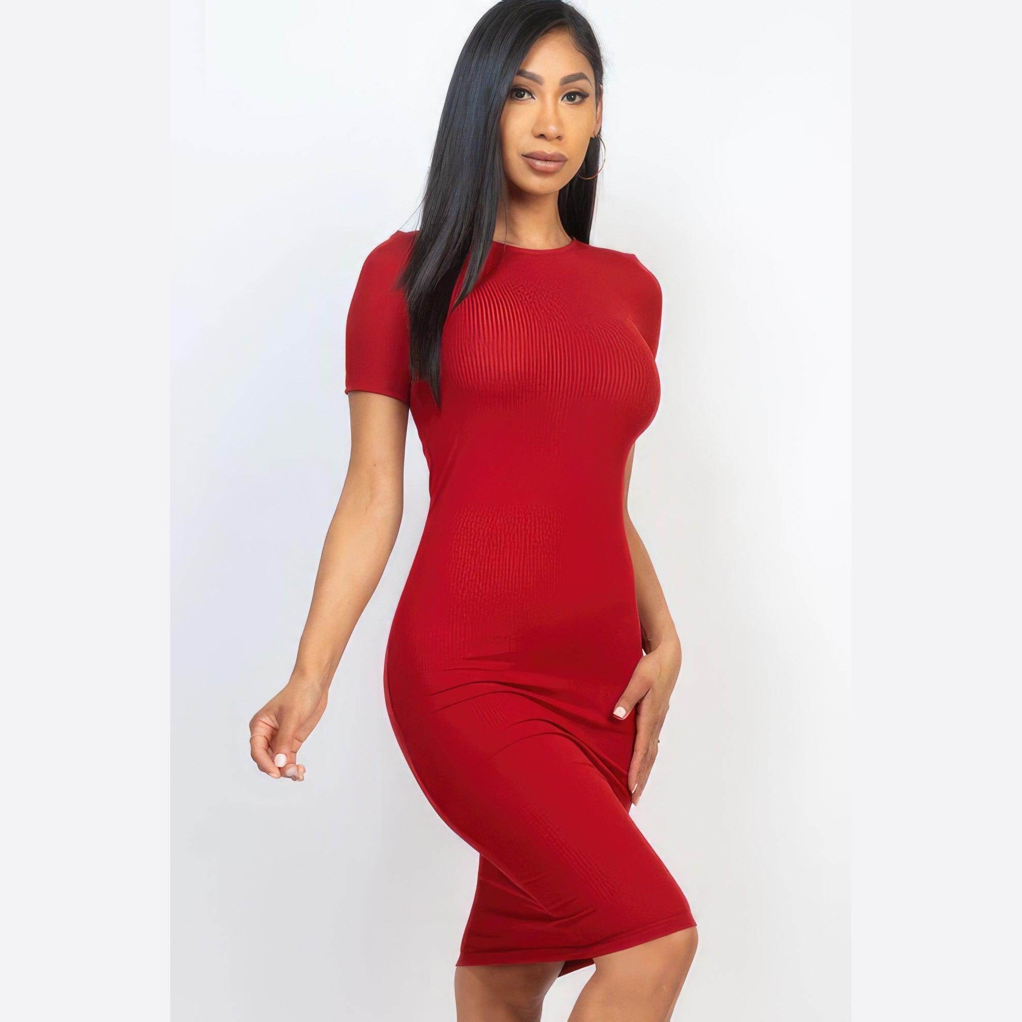 Learn more about our Ribbed Bodycon Midi Dress - Wine at VacationGrabs: