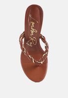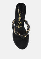 The sandals are effortless to put on, thanks to their easy-to-wear design and comfortable heel height. The gold accents on the braided straps add a touch of grace, while the cushioned insole provides comfort and reduces stress on your feet. They are the perfect go-to choice for getting a fashionista look.