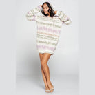 Get ready to turn heads and make a statement with our Terry Brushed Print Sweater Dress. Add it to your cart now and experience the perfect blend of fashion and comfort!
