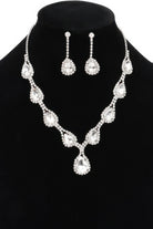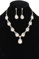 Try this statement holiday necklace and earring set with a little black dress or a casual white blouse. Each stone is carefully set so the jewelry stays secure even with movement. The bold teardrop shapes offer a flattering look for many face shapes.