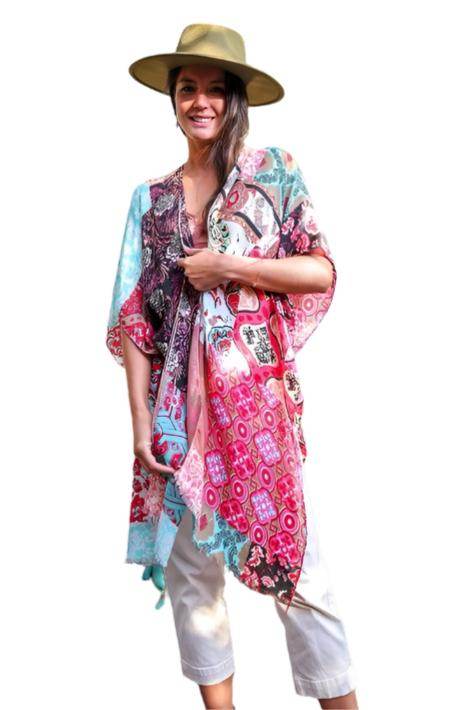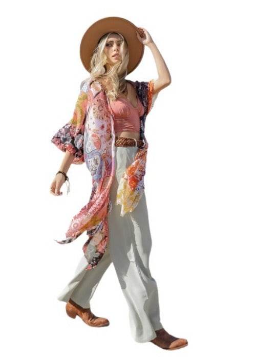 Step into effortless style with our Boho Floral Patchwork Kimono, designed by Leto Accessories. This stunning piece is the perfect addition to your summer wardrobe. Whether you're strolling along the shoreline or sipping cocktails by the pool, this beach cover-up kimono offers an elegant way to enjoy sunny days.