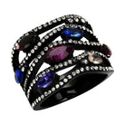 The multi-gem design features vibrant synthetic crystals. Each stone showcases a unique color, reflecting a spectrum of dazzling hues. This makes the ring perfect for those who love a touch of color and brilliance.