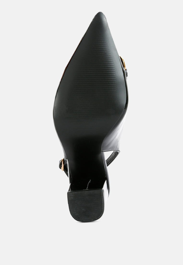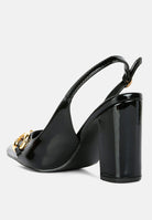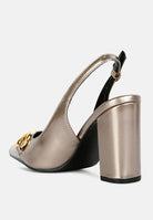 With gold detail on the front, a buckled slingback and high-block heels, these slingback sandals make for the best footwear you can own! The sandals are contemporary, trendy, and sure to turn heads. The soft cushion insole cuts strain and offers comfort to the feet.