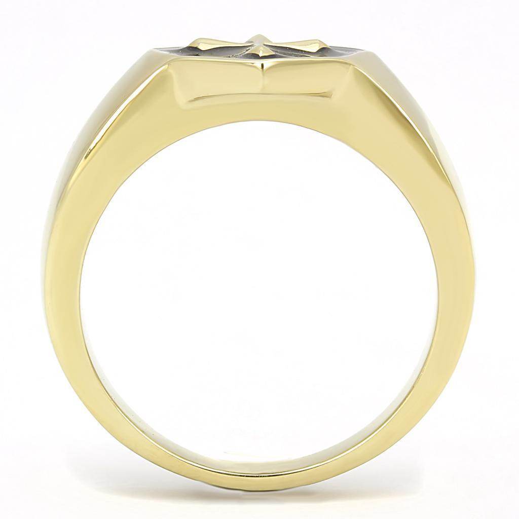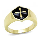 Enhance your style with this stainless steel epoxy mens ring. Designed for those who value both fashion and durability, this ring features a striking black and gold cross design. It's a perfect addition to any wardrobe. The combination of stainless steel and epoxy ensures long-lasting wear and resilience.