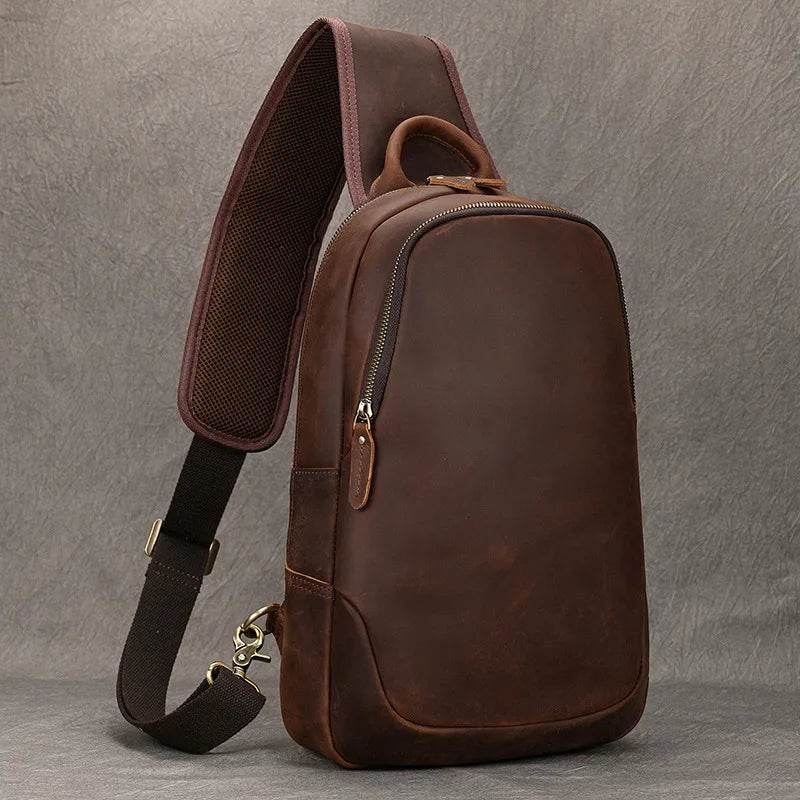 Large Size Leather Chest Bag for Men Crossbody Outdoor Sling
