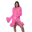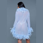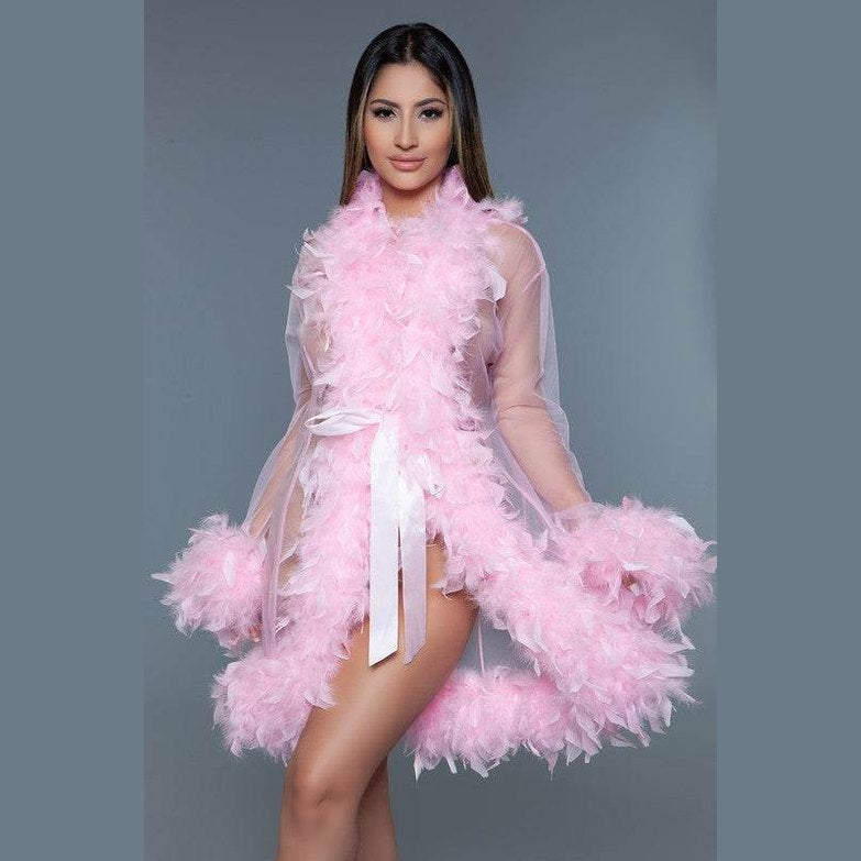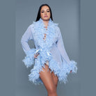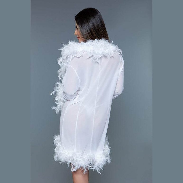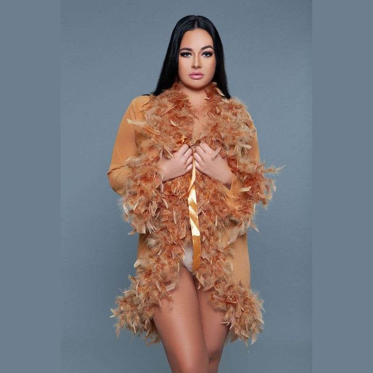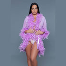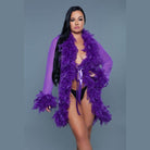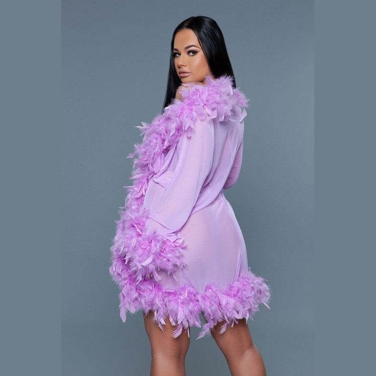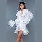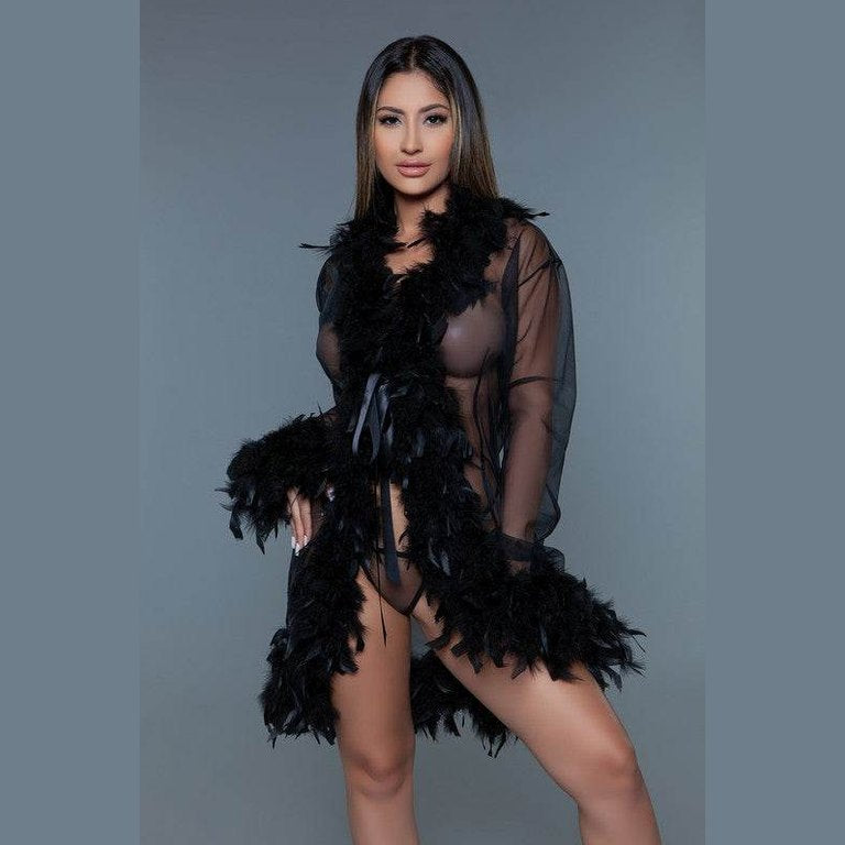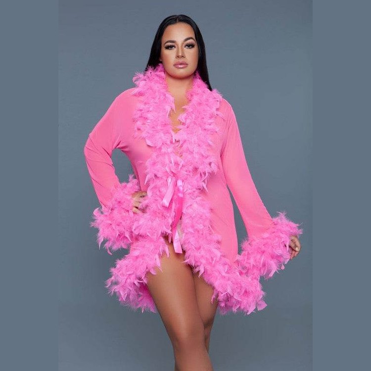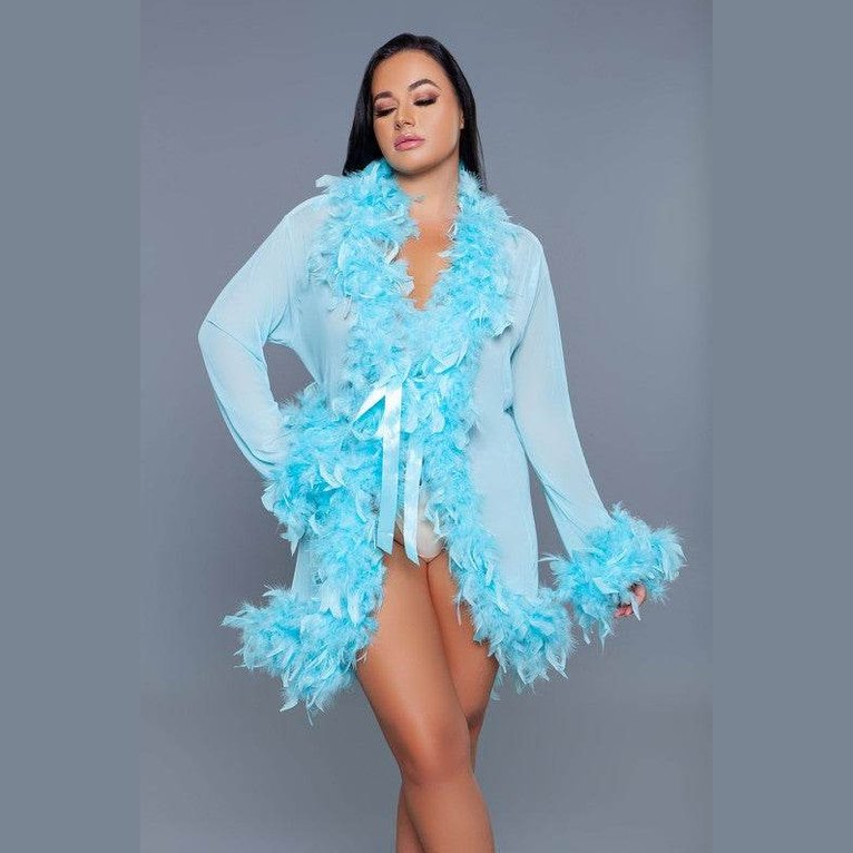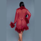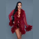 Lux short robe with feather boa trim is a playful yet elegant garment that combines the airy lightness of chiffon with the whimsical allure of a feather boa trim. This robe is designed for those who love to add a touch of glamour and fun to their loungewear