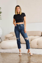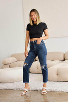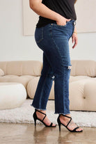 RFM Crop Dylan Full Size Tummy Control Distressed High Waist Raw Hem Jeans