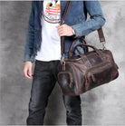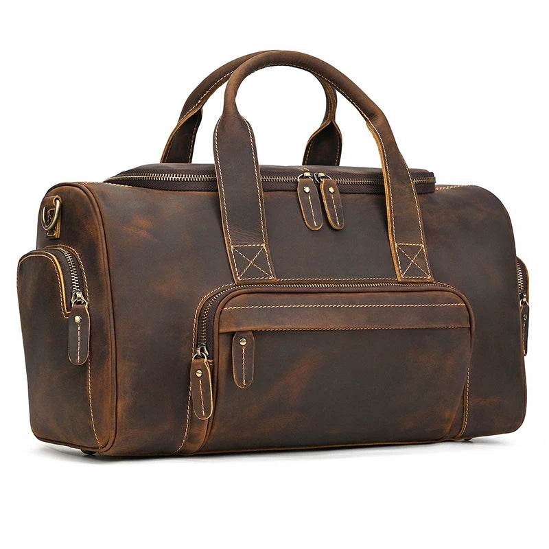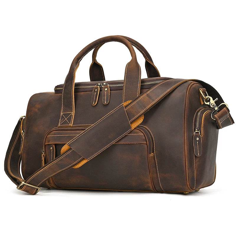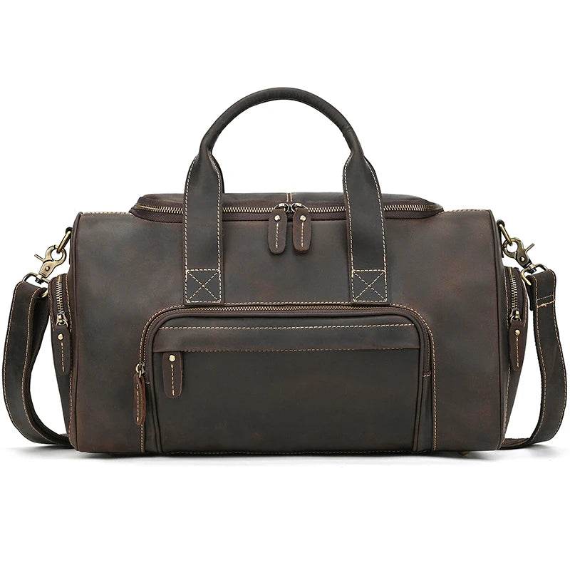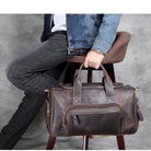 Designer Business Travel Leather Duffle Bag for Men Outdoor Coffee