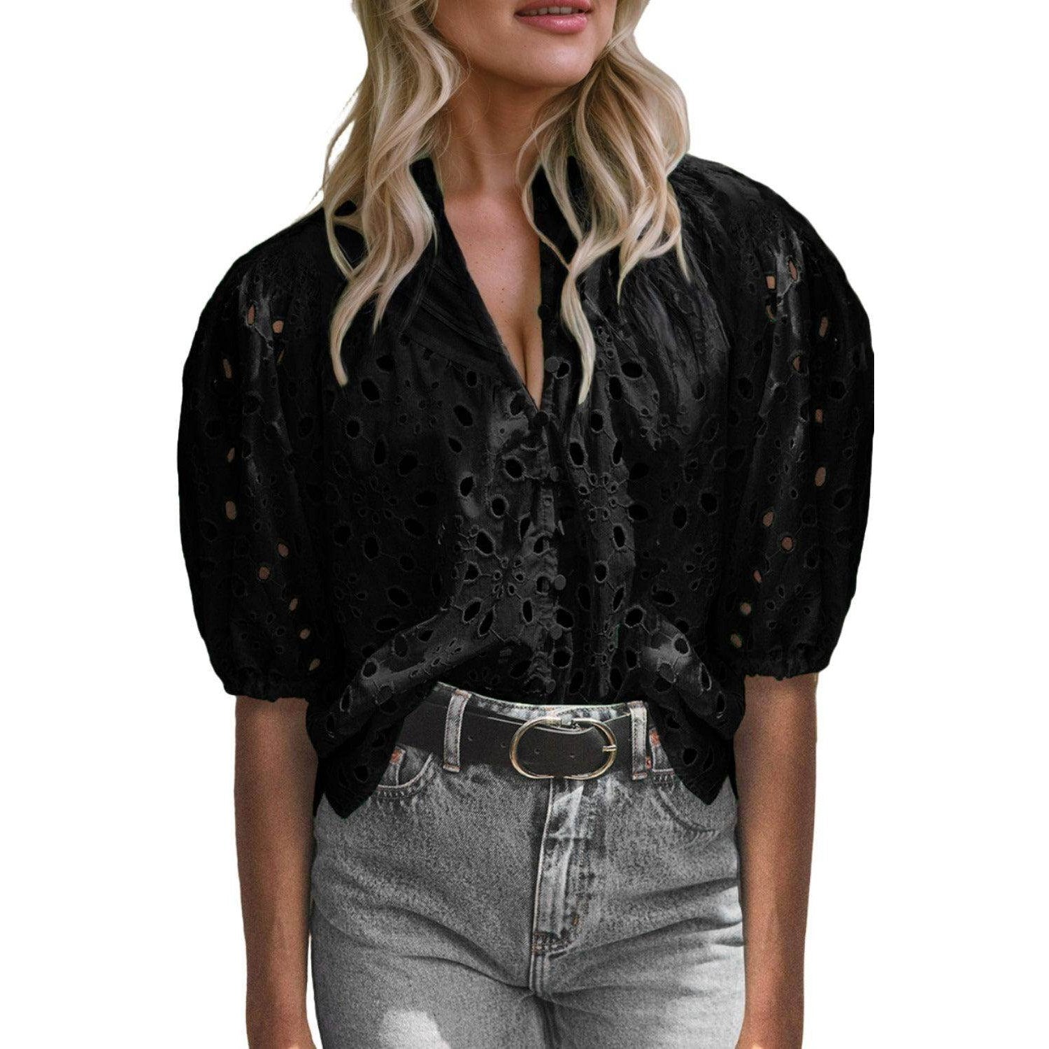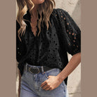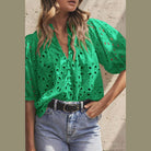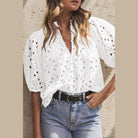 Learn more about our Eyelet Button Up Half Sleeve Blouse at VacationGrabs: