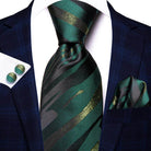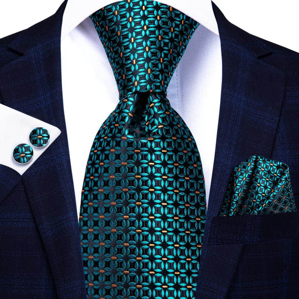 The elegant peacock blue hue offers a chic touch to your attire. Ideal for making a statement, this luxury silk tie set for weddings ensures you stand out. Complement your look with the matching cufflinks that add a touch of class.