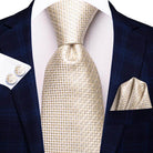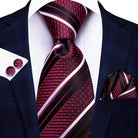 No detail is overlooked. The set features a finely crafted tie and sleek cufflinks, perfect for any groom or wedding guest. This luxury silk tie set for weddings is designed to impress and is a must-have in any stylish man's accessory collection.