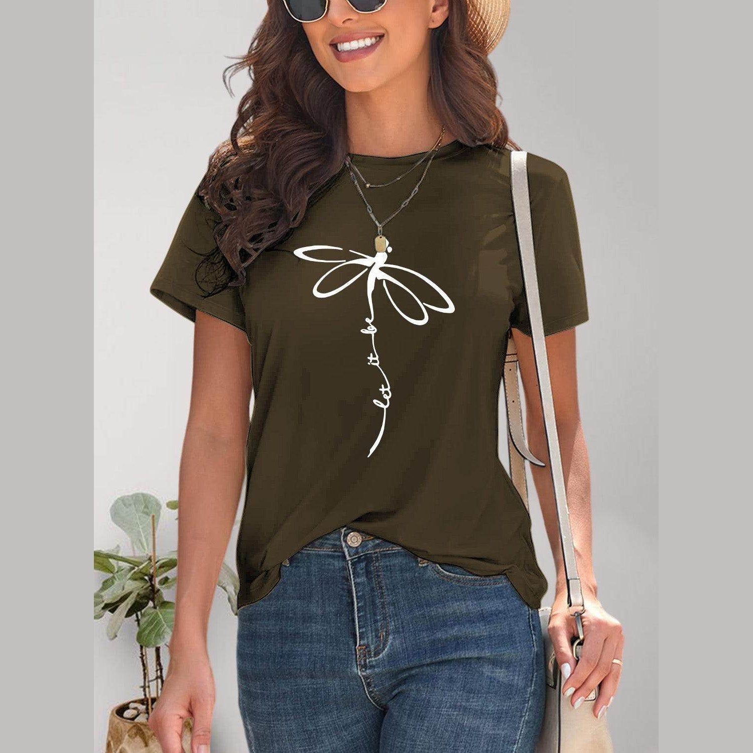 Learn more about our Dragonfly Graphic Round Neck Short Sleeve T-Shirt at VacationGrabs: