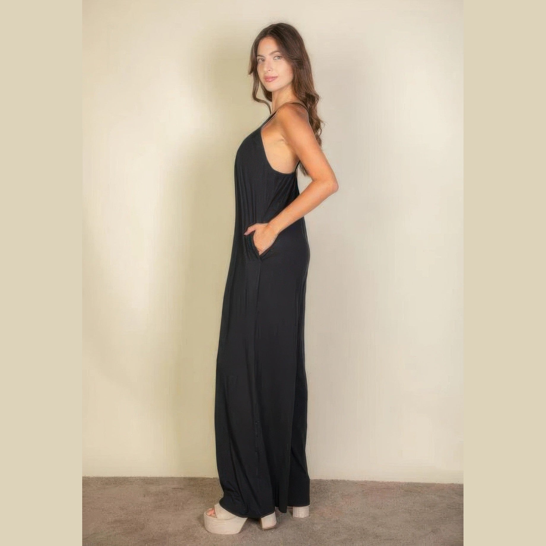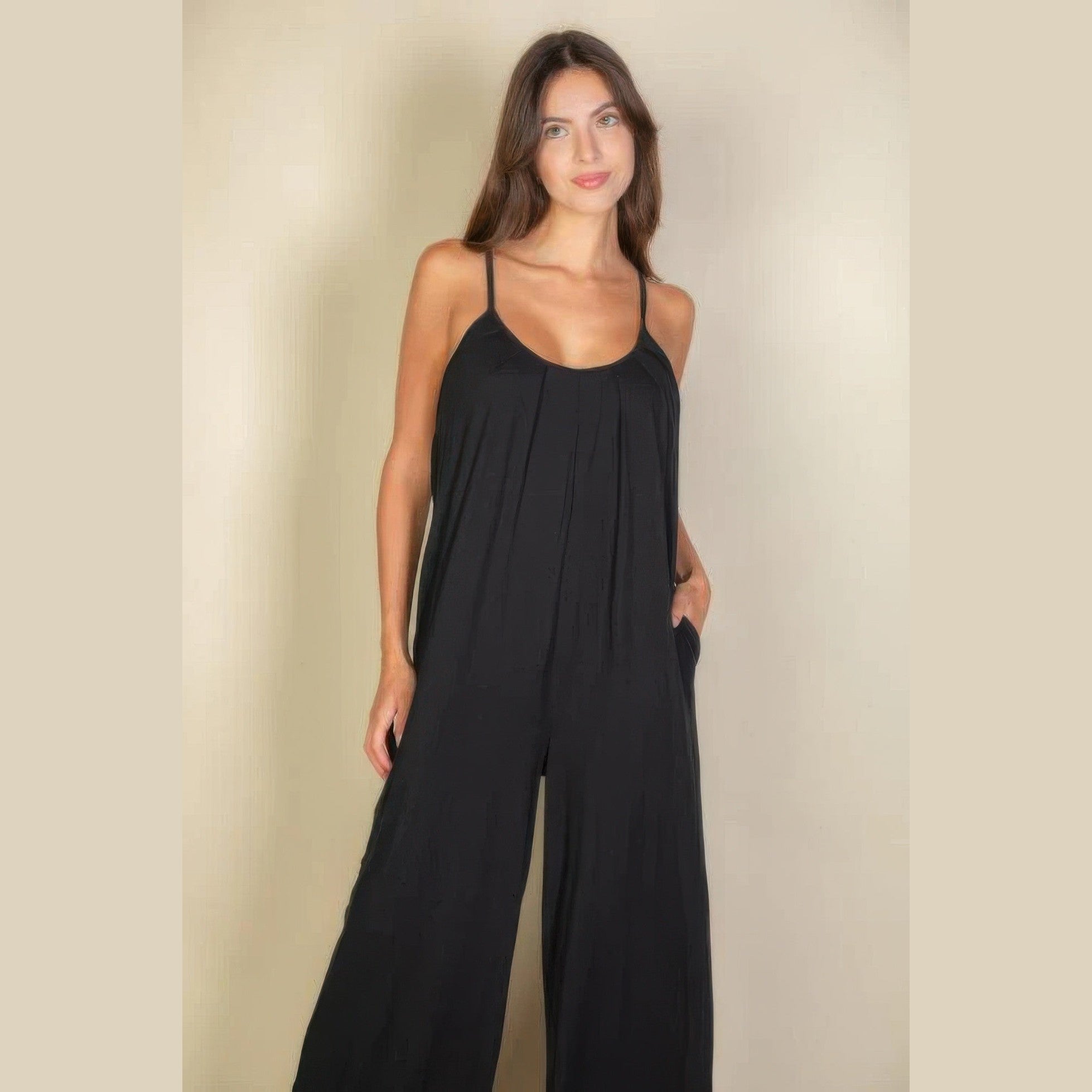 Comfortable All-Day Wear: Our Spaghetti Strap Solid Wide Jumpsuit is tailored for maximum comfort, allowing you to move freely from morning to night.
