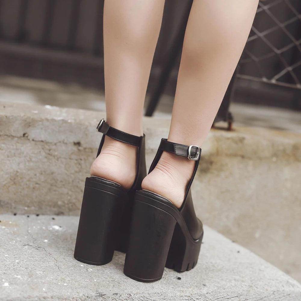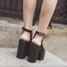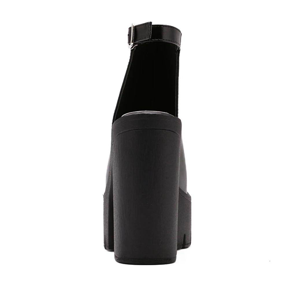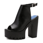 Women's Platform Block High Heels Black Peep Toe Ankle Buckle Strap Slingbacks