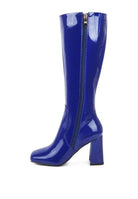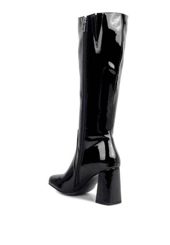 Learn more about our Hypnotize Patent Pu Block Heeled Calf Boots at VacationGrabs: