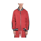 Introducing the Mens Rally Track Jacket from VacationGrabs, designed to elevate your style. Featuring a bold red and black color scheme, this jacket combines fashion with functionality.