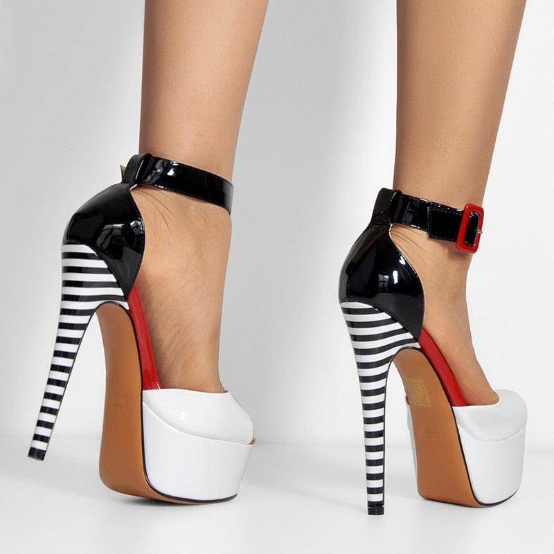 Peep Toe Platform Shoes Thin Heels Ankle Strap Heels