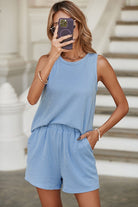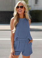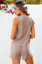Vacation Outfits for Women - Lightweight Womens Loungewear Set - Ribbed Tank & Shorts
