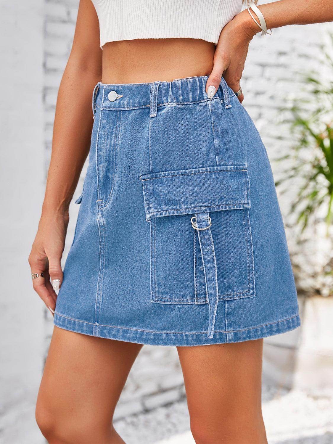 Learn more about our Pocketed Buttoned Denim Skirt at VacationGrabs: