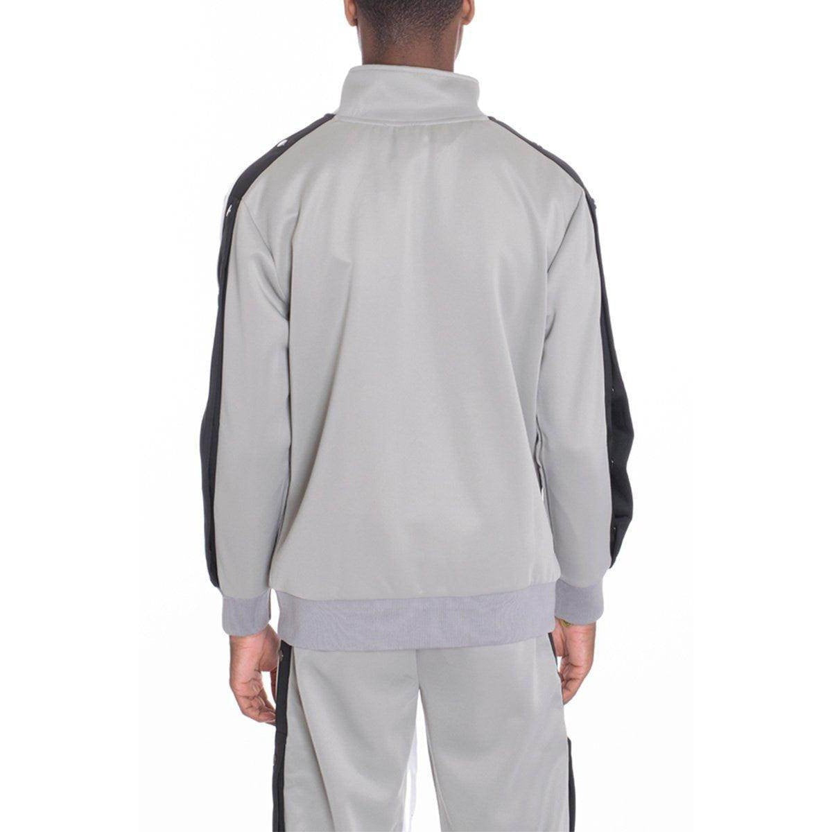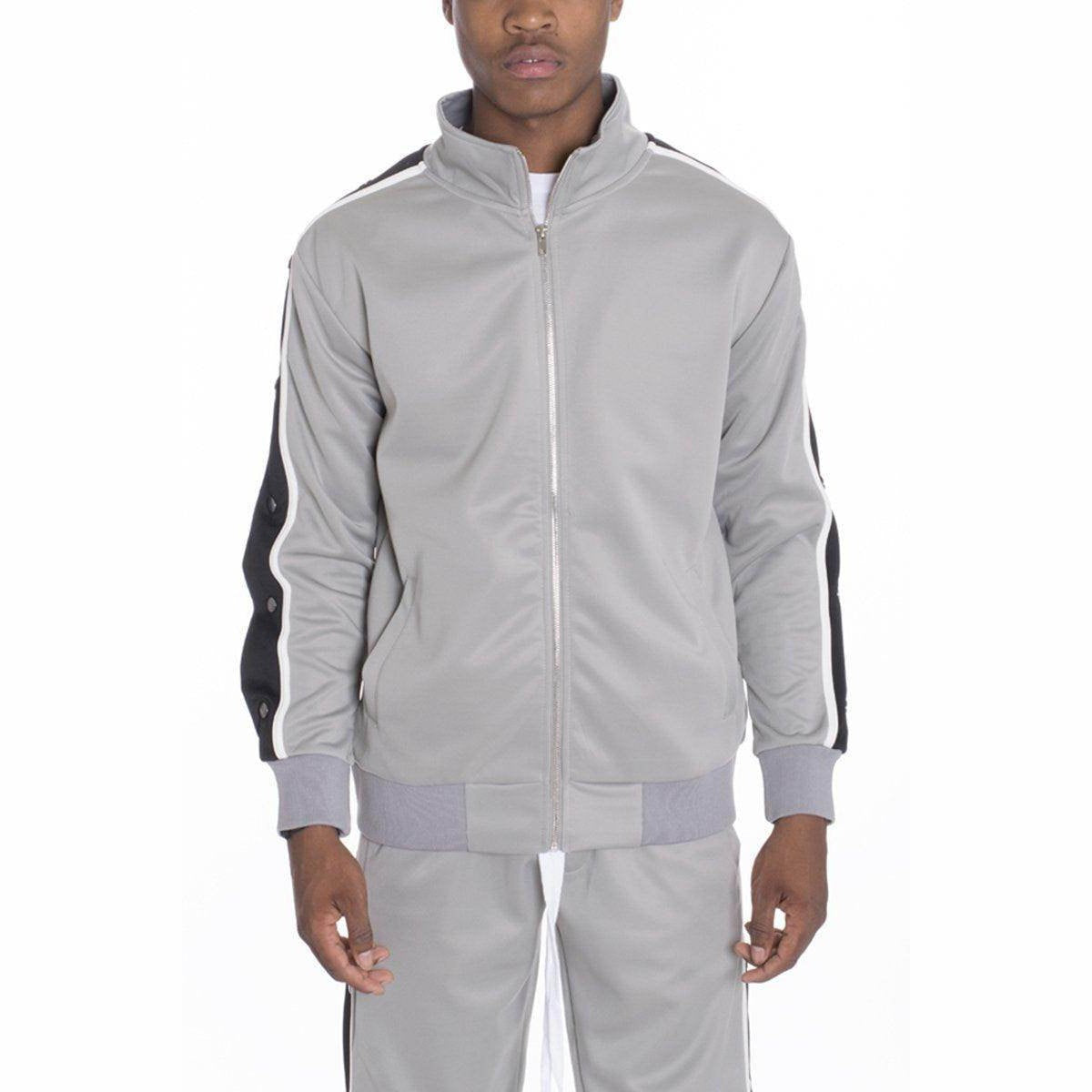 Enhance your wardrobe with the Men's Snap Button Grey Track Jacket from VacationGrabs. This versatile snap button track jacket blends style and comfort, perfect for any casual outing. Designed for the modern man, it strikes a balance between fashion and function.