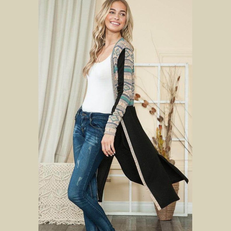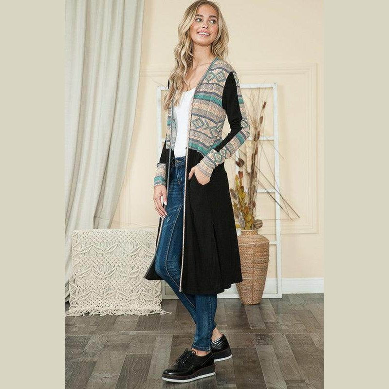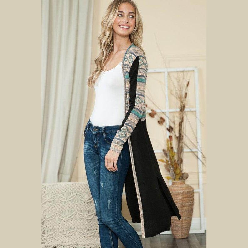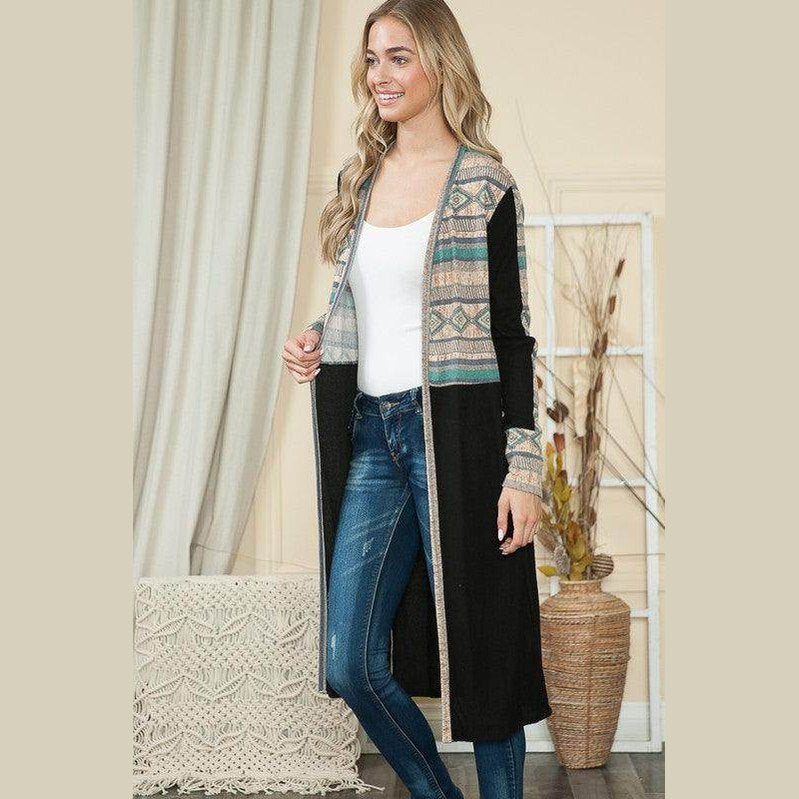 Learn more about our Mixed Tribal Maxi Cardigan Sweater at VacationGrabs: