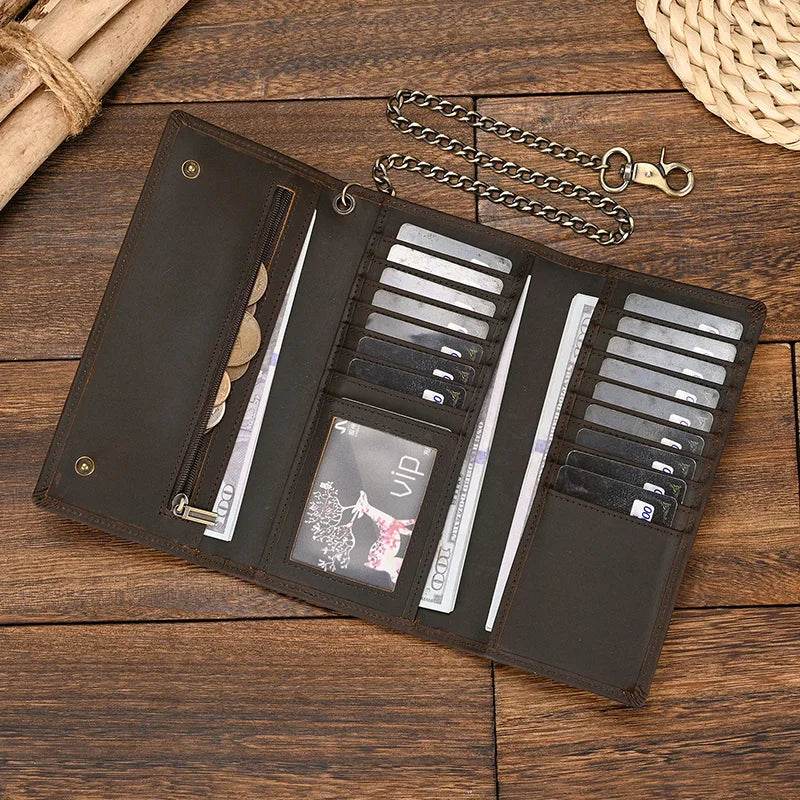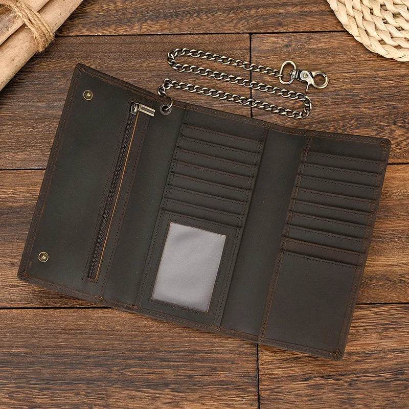 Leather Clip Wallet for Men Multi-Card Wallet with Iron Chain Wrist Pouch