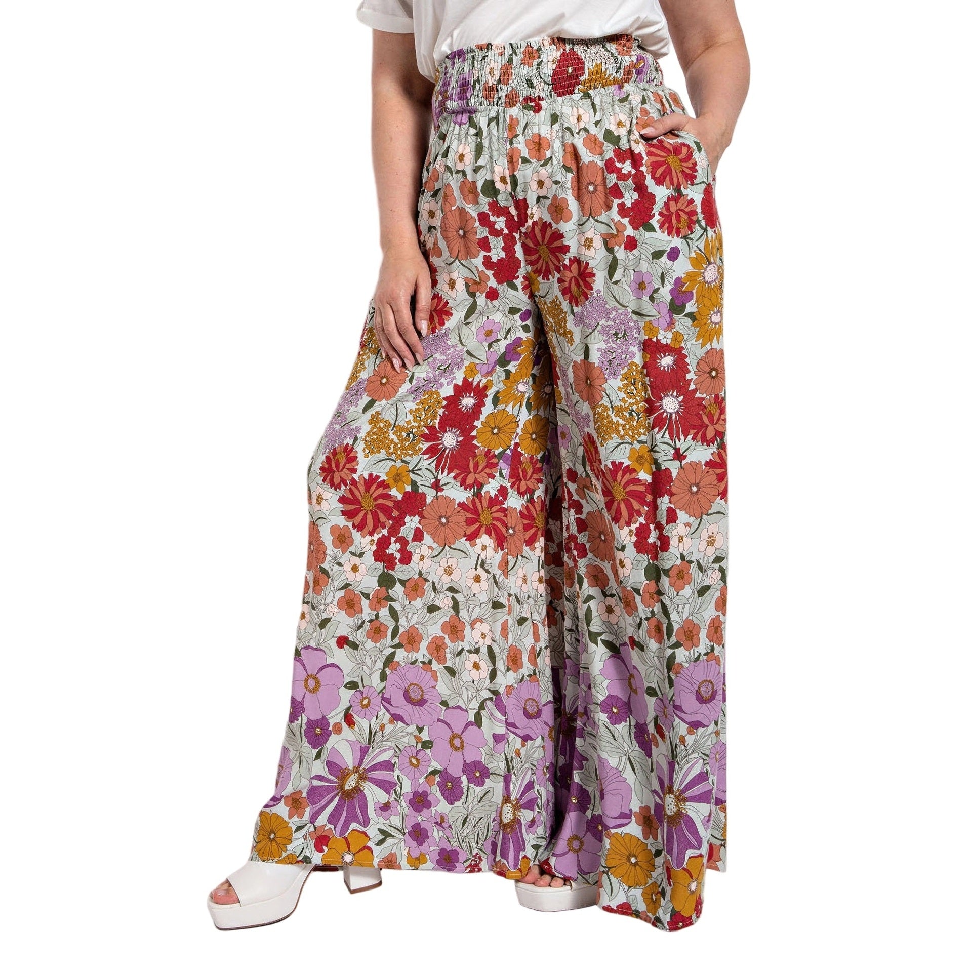 Design: Flare wide-leg with a smocked waist and functional side pocket for added convenience and style