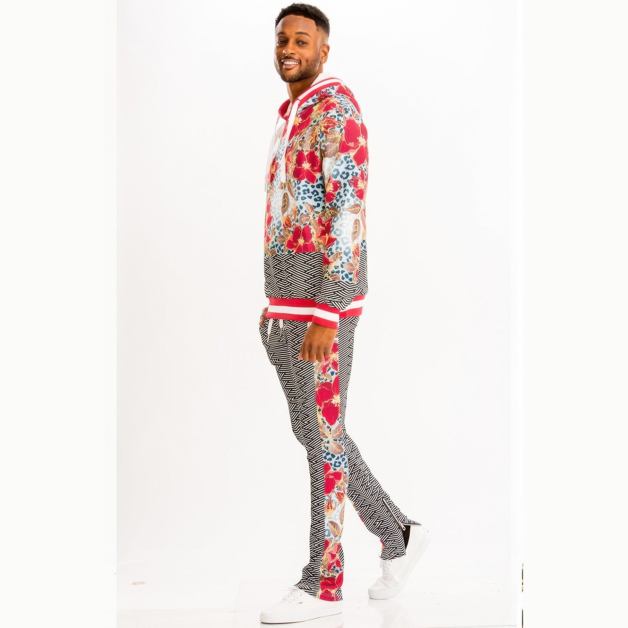 The Island Print Hoodie Set from VacationGrabs offers a stylish and comfortable choice for those seeking to make a statement. This men's 2PC track set includes a hoodie and sweat pants, each featuring a vibrant and unique island-inspired design.