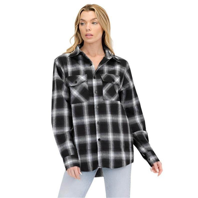 Boyfriend Fit Checker Plaid Flannel Long Sleeve Shirts