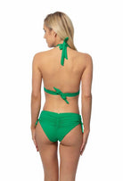 PHAX solid bikini set featuring a halter top with ties at the neck and back for a custom/adjustable fit. Removable pads, stretch material and fit. Adjustable Side Bottom features cinch ties on each size allowing you to adjust the coverage. Designed in Colombia.