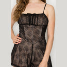 Design: Ribbon lace details combined with a flattering corset-style bodice, providing structure and style. The romper's cut is both flattering and daring