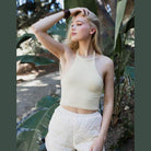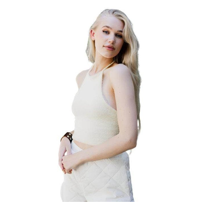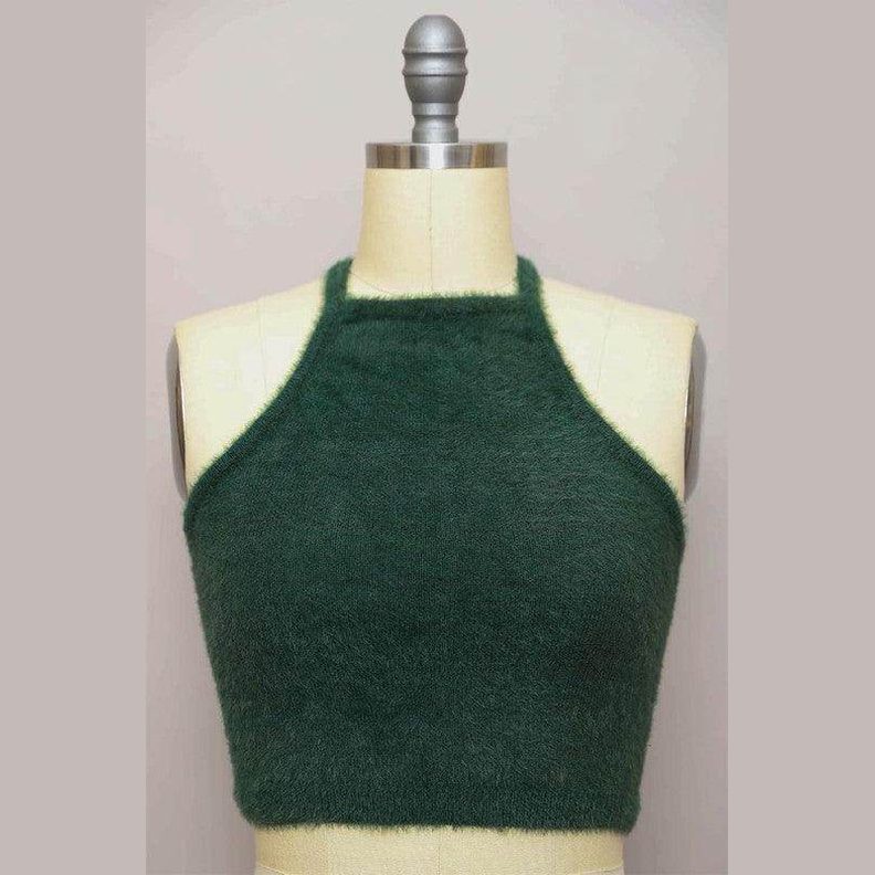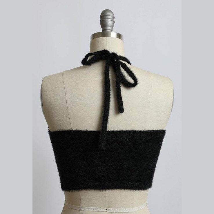 A captivating blend of chic and cozy, this cropped fuzzy halter top offers a unique appeal. The halter neckline highlights your shoulders gracefully. It's ideal for beach outings, casual dates, or any relaxed setting where style matters. The luxurious feel of the fabric embraces you in warmth, making it a fantastic transitional piece for breezy evenings.