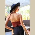 Leto Accessories Cropped Fuzzy Halter Top for Women