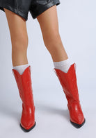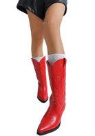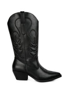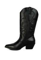 Get wildin'! The cowboy boots are ravishing with the beautifully intricate embroidery work and comfortable to wear with a soft cushion insole and short block heels. The faux leather boots are sure to make a bold impression and turn some heads!